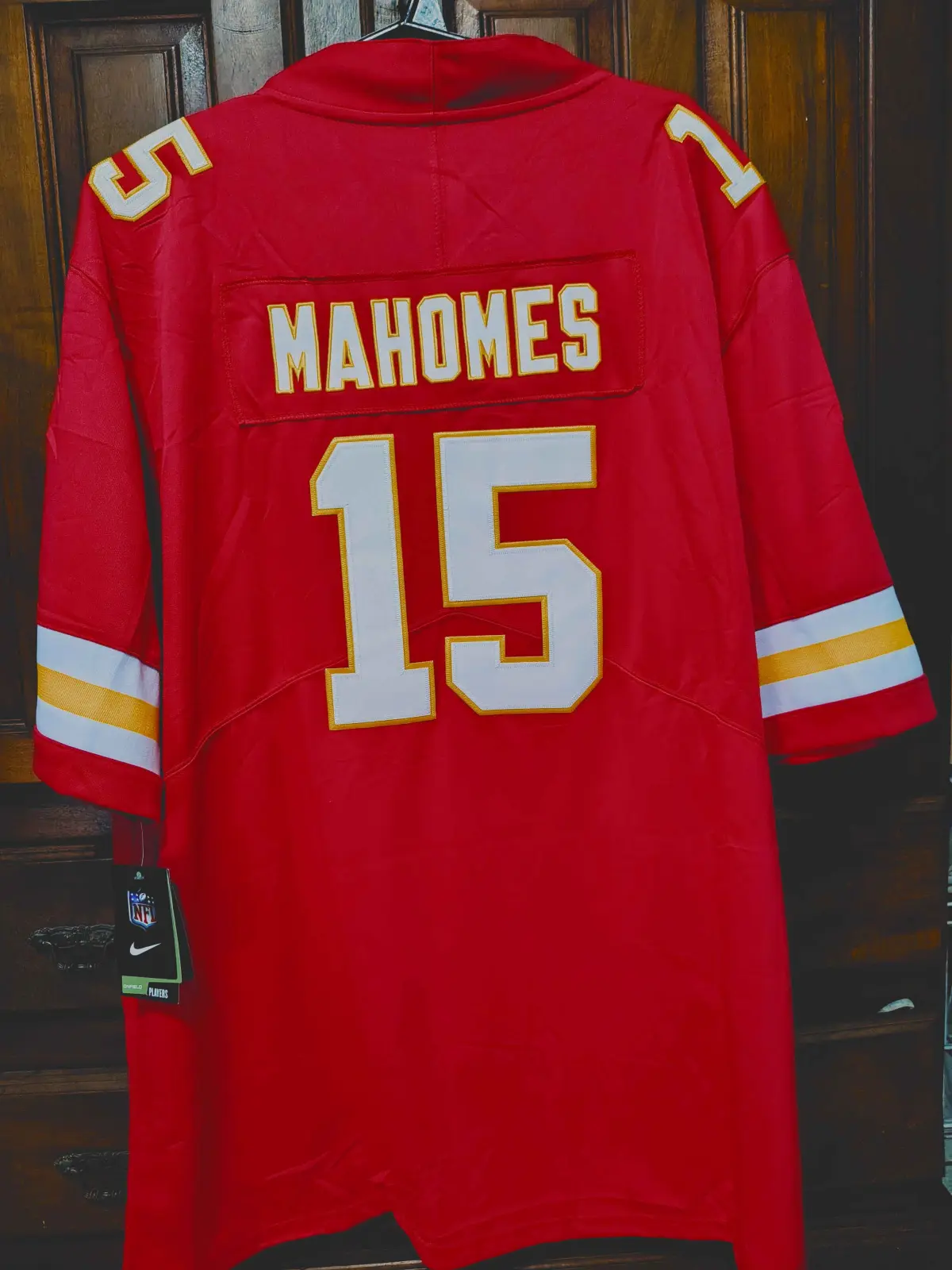 La camiseta de la imagen es una camiseta de fútbol americano Nike de los Kansas City Chiefs de Patrick Mahomes con el número 15, Información del Producto