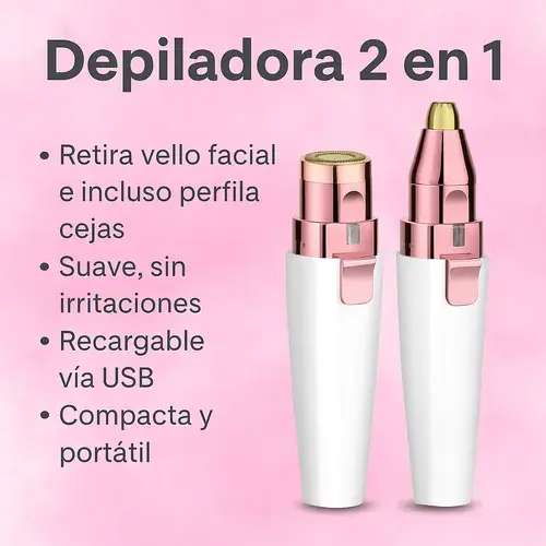 🟢 Logra una piel suave y libre de vello con la depiladora facial 2 en 1, ideal para rostro y zonas delicadas. Su diseño práctico permite eliminar el vello de manera rápida, segura y sin dolor, dejando la piel limpia y uniforme.