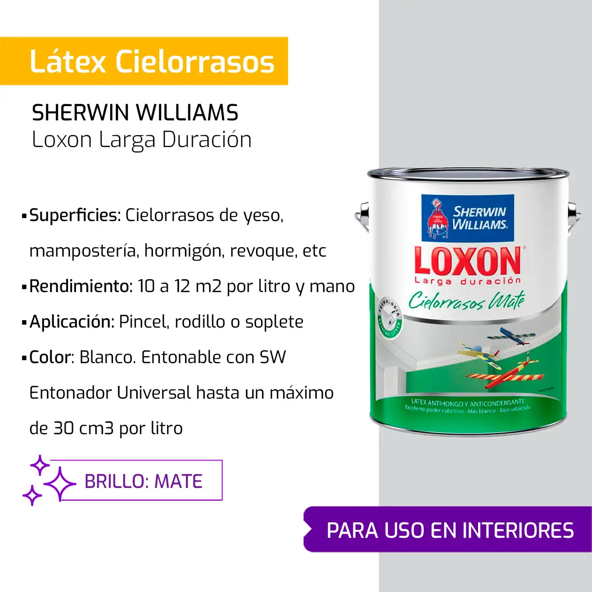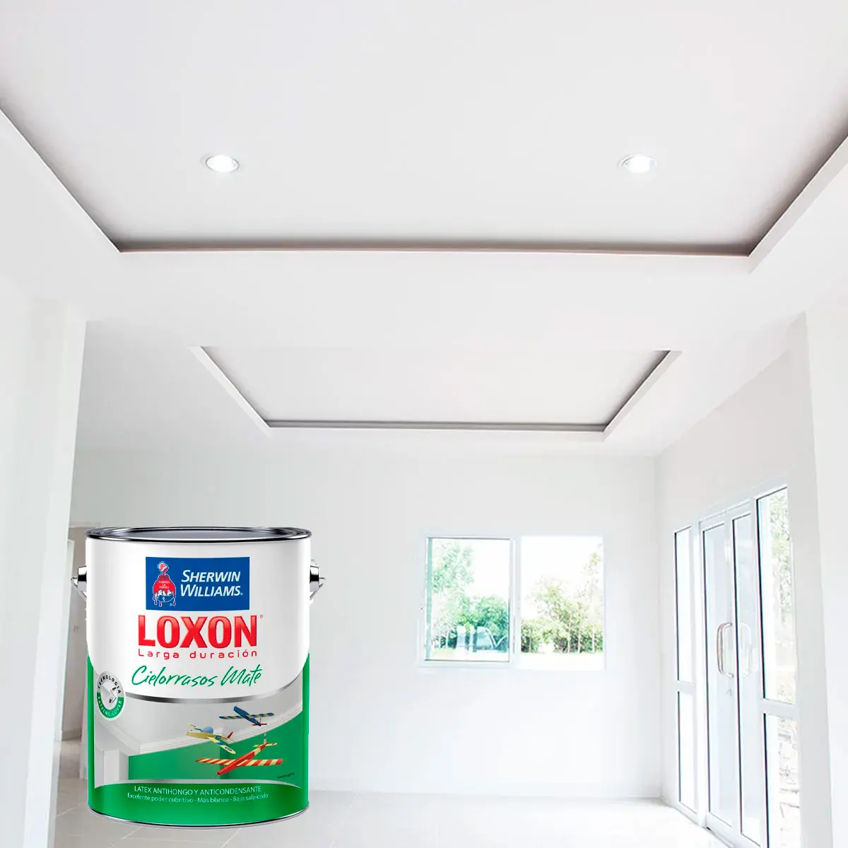 ¿Buscás un blanco impecable y duradero? El Loxon Cielorrasos de Sherwin Williams es la elección #1 de los profesionales. Su fórmula avanzada está diseñada específicamente para evitar que el vapor dañe tus superficies, manteniendo tus ambientes sanos y luminosos.