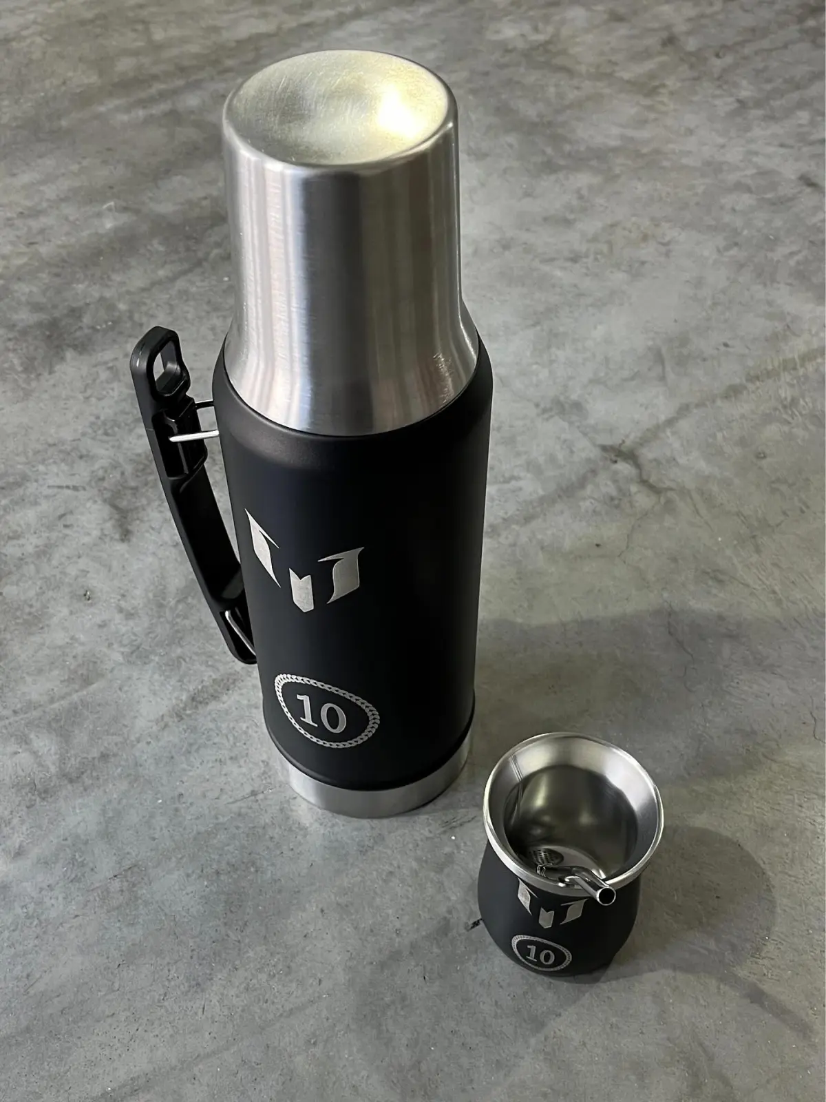 Viví la pasión por el mate y el fútbol con el Termo Messi 1.2L 🐐⚽. Su gran capacidad mantiene el agua caliente por más tiempo 🔥❄️, ideal para el día a día, viajes o juntadas con amigos. Incluye mate a juego 🧉 para que disfrutes la experiencia completa con el estilo del mejor del mundo. Resistente, práctico y perfecto para regalar 🎁.